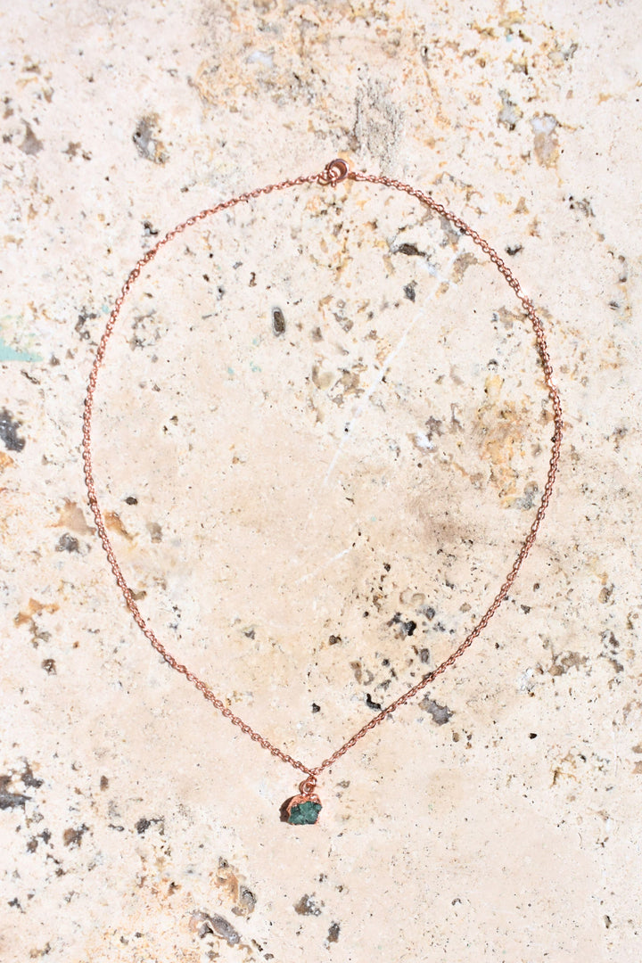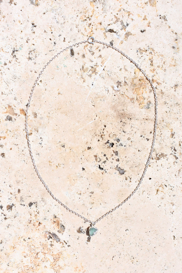 The Marina Pendant is a delicate piece that encapsulates the natural beauty of raw emeralds. Crafted in bronze with 24K gold, silver, and rose gold plating, it features a protective cathodic lacquer coating, ensuring durability and brilliance.